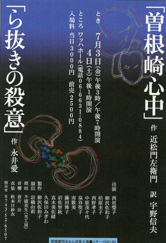 | 「曽根崎心中」、「ら抜きの殺意」演出を終えて
