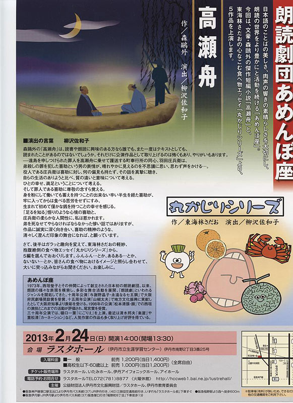 伊丹公演2013は森鷗外の名作と軽妙なエッセイの取り合わせでした。