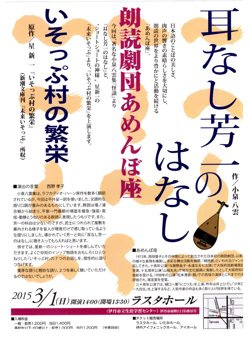 小泉八雲「耳なし芳一のはなし」 星 新一「いそっぷ村の繁栄」